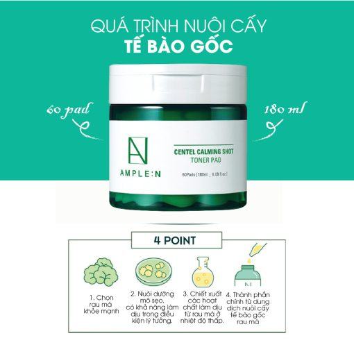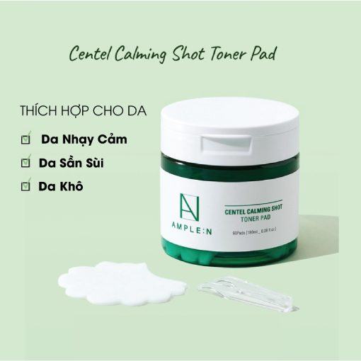 Bông Toner Làm Dịu Da AMPLE:N Centel Calming Shot Toner Pad 60 Miếng – Naki Cosmetic