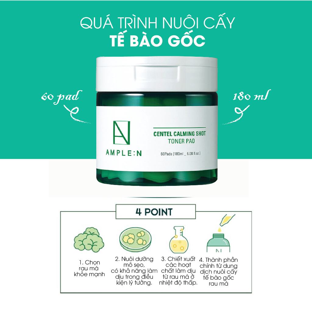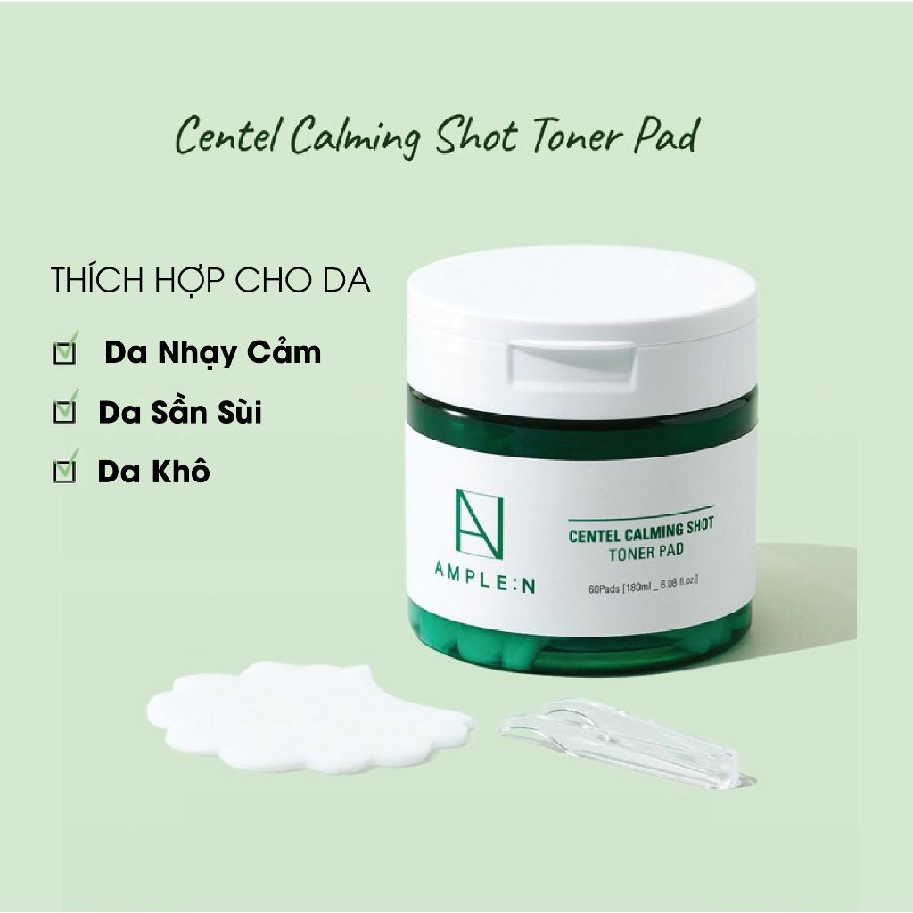 Bông Toner Làm Dịu Da AMPLE:N Centel Calming Shot Toner Pad 60 Miếng