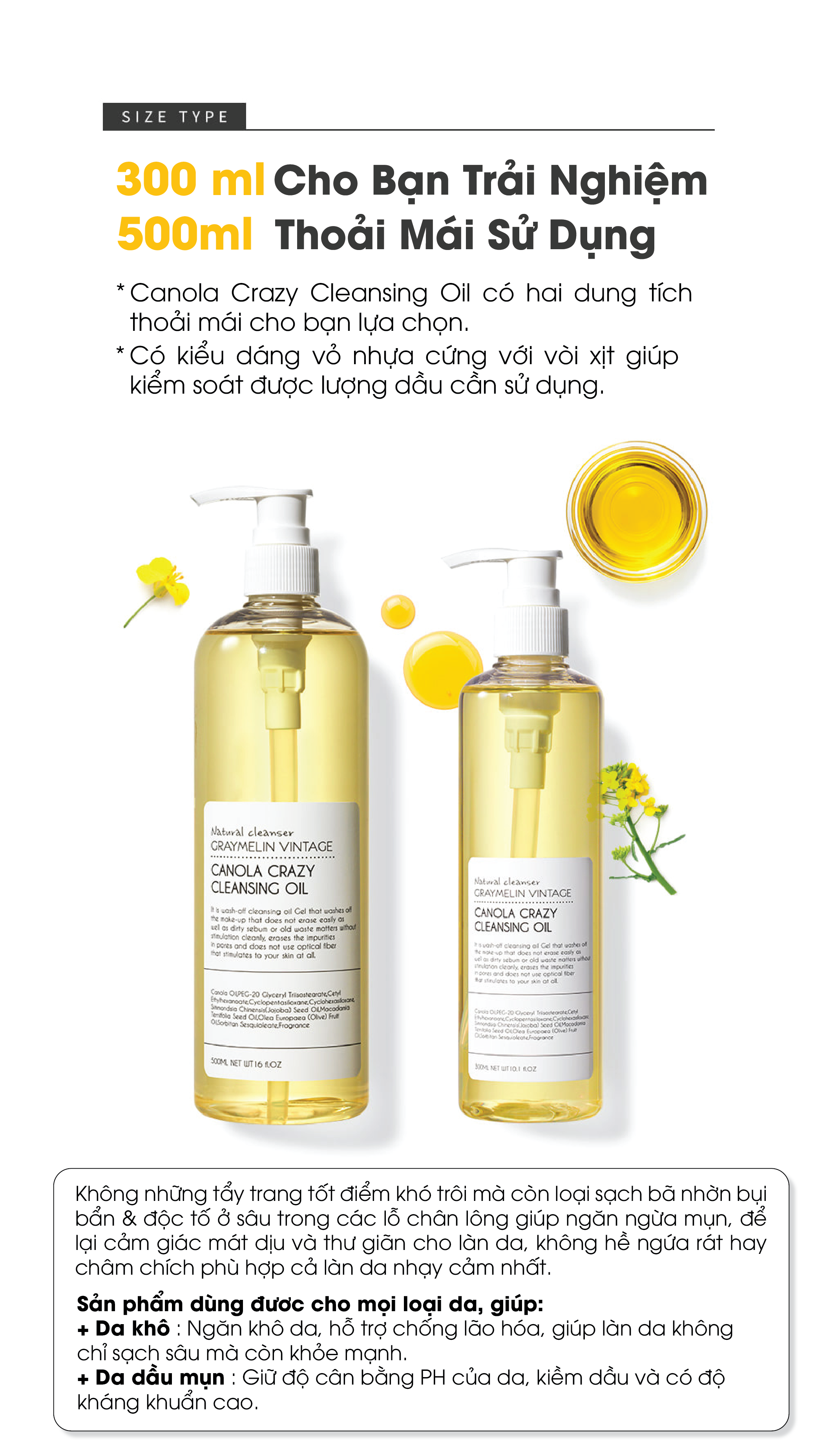 Dầu Tẩy Trang Hoa Cải Graymelin Vintage Canola Crazy Cleansing Oil 500ml – Naki Cosmetic