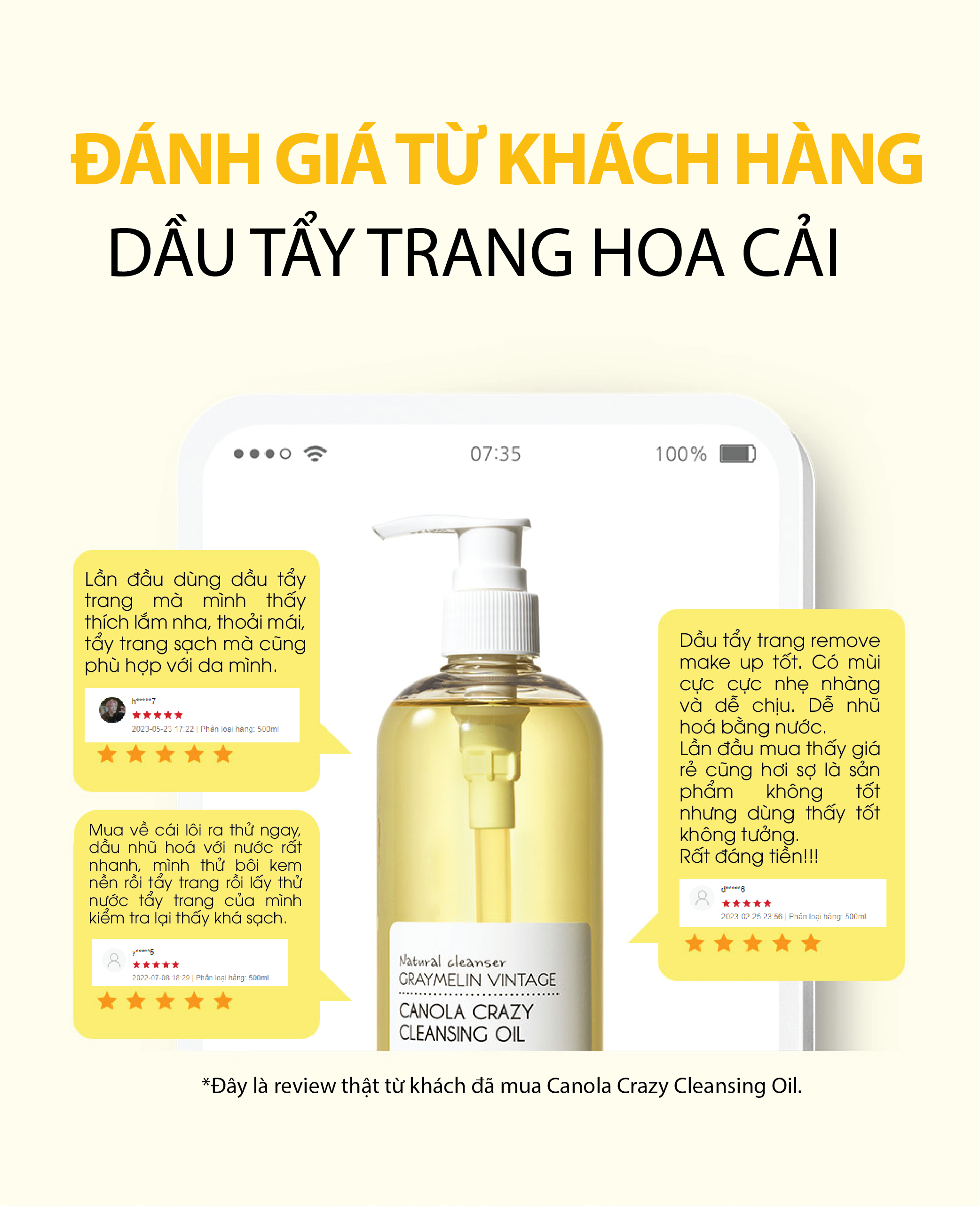 Đánh giá Dầu Tẩy Trang Hoa Cải Graymelin Vintage Canola Crazy Cleansing Oil 500ml