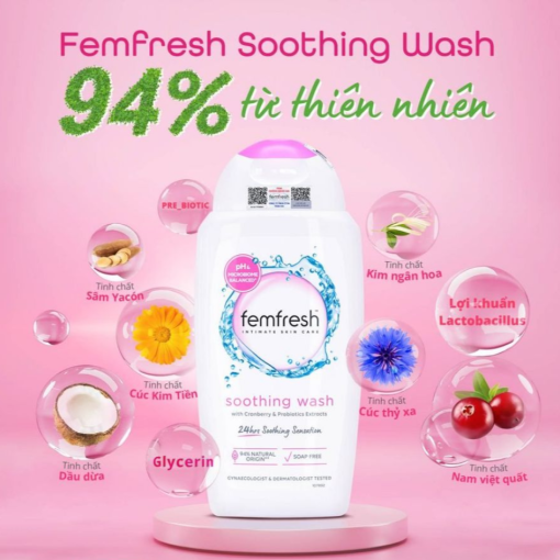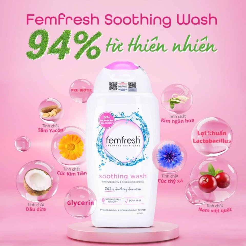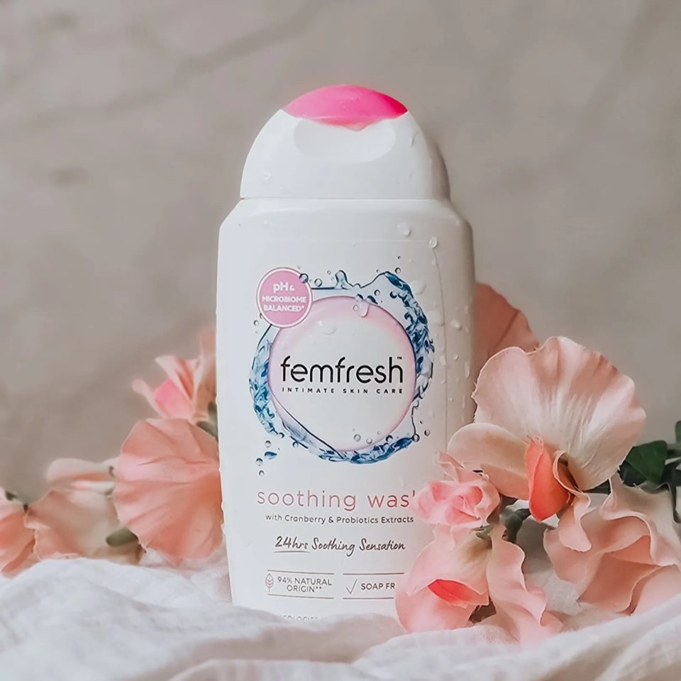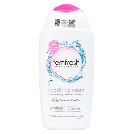 Dung dịch vệ sinh phụ nữ Femfresh Soothing Wash hỗ trợ giúp làm sạch nhẹ nhàng và duy trì độ pH ổn định cho vùng kín, giúp vùng kín sạch sẽ thơm mát suốt cả ngày. Sản phẩm thích hợp sử dụng hàng ngày cho chị em phụ nữ mọi độ tuổi, đặc biệt là những người mắc vấn đề về vùng kín.
