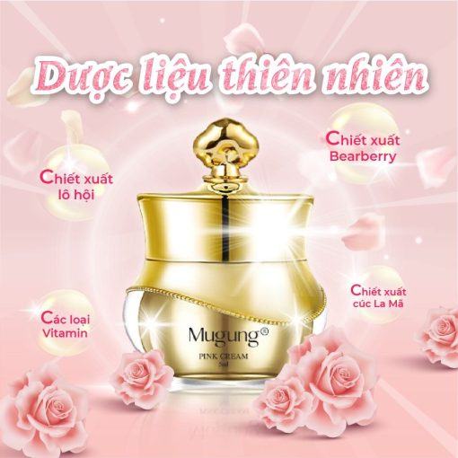 Kem dưỡng Mugung Pink Cream hỗ trợ dưỡng ẩm, làm mịn, tăng độ sáng hồng cho vùng nhũ hoa và vùng bikini. Sản phẩm dạng kem bôi dễ dùng, không gây đau rát, kích ứng, giúp bật tone nhanh.