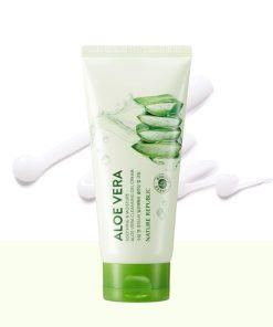 Kem Tẩy Trang Chiết Xuất Lô Hội Nature Republic Soothing & Moisture Aloe Vera Cleansing Gel Cream hiện tại đã có mặt tại Naki Cosmetic dành cho mọi loại da, kể cả da nhạy cảm với chiết xuất Lô hội giúp nhẹ nhàng loại bỏ lớp trang điểm, bụi bẩn và bả nhờn sâu bên trong lỗ chân lông. Đồng thời giúp giữ ẩm và làm dịu da mang lại làn da sạch sâu.