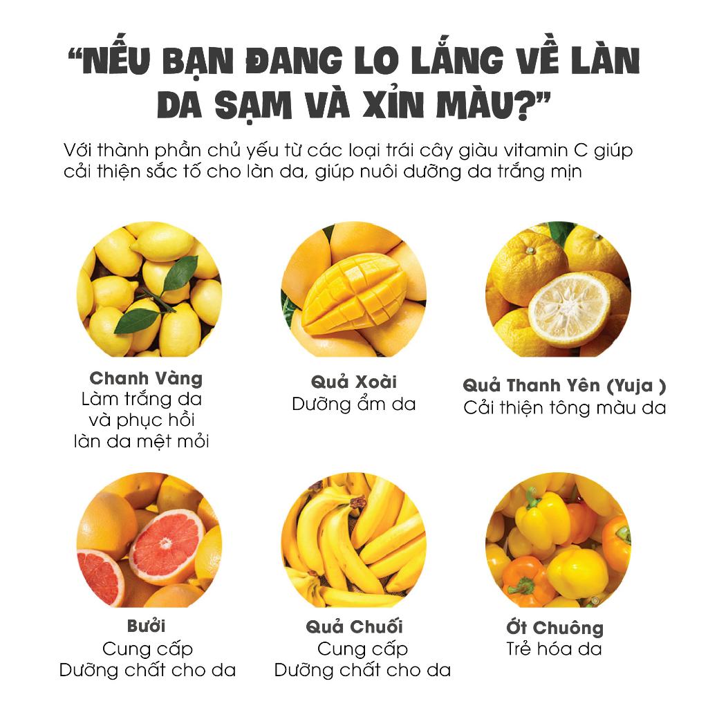 Đây là nước hoa hồng nằm trong set dưỡng da trái cây vàng với công dụng chính là làm sáng da, giúp da đều màu, phục hồi da bị xỉn màu.