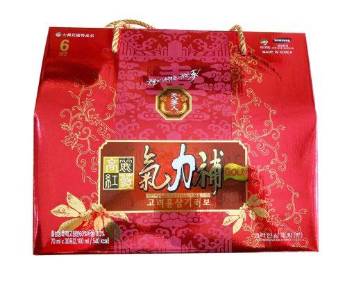 Nước hồng sâm Korean Red Ginseng Giryockbo Hàn Quốc được chiết xuất từ cao nhân sâm, cao linh chi, cao hoàng kỳ, cam thảo,… hỗ trợ bồi bổ cơ thể và tăng cường sức đề kháng, hỗ trợ tăng sự tỉnh táo và khả năng tập trung, đồng thời hỗ trợ hạn chế những dấu hiệu từ tuổi tác. Sản phẩm dùng cho người suy nhược, mệt mỏi, căng thẳng tinh thần, người cao tuổi, người đang hồi phục sức khỏe và kém tập trung.