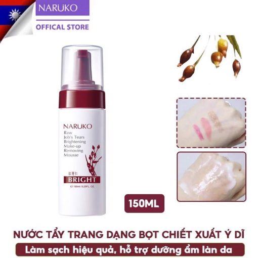 Nước Tẩy Trang Dạng Bọt, Làm Sáng Da, Se Khít Lỗ Chân Lông, Chiết Xuất Ý Dĩ Nhân Đỏ Naruko Raw Job’s Tears Brightening Makeup Removing Mousse 150ml – Naki Cosmetic