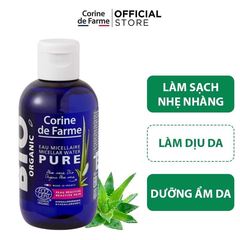 Nước Tẩy Trang Corine De Farme Hữu Cơ Cho Da Nhạy Cảmnước tẩy trang sản phẩm được chứng nhận sản phẩm hữu cơ COSMOS ORGANIC bởi Ecocert Greenlife. Chiết xuất lô hội hữu cơ giàu dưỡng chất giúp loại bỏ một cách hoàn hảo và nhẹ nhàng lớp makeup trên da, an toàn cho làn da nhạy cảm thuộc thương hiệu c đến từ Pháp.