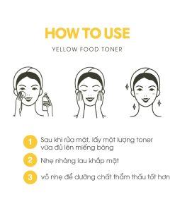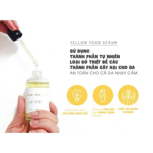Với chiết xuất từ các loại hoa trái màu vàng thuần khiết tự nhiên đúng như tên gọi Yellow Food. Các loại củ quả màu vàng đều chứa các loại vitamin đa dạng giúp nuôi dưỡng làn da, cải thiện các vấn đề sắc tố.
