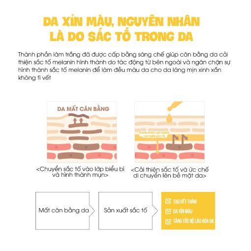– Cải thiện các vấn đề sắc tố, ngăn cản sự phát triển của melanin – nguyên nhân gây sạm nám, xỉn màu.