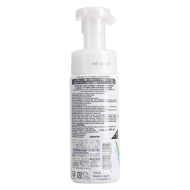 Sữa Rửa Mặt 3 Trong 1 Giúp Tẩy Trang, Làm Sạch & Dưỡng Ẩm Cho Da Dove Beauty Serum 3-in-1 Cleansing Mousse Removes Makeup, Cleanses Pores & Moisturizes Skin 135ml