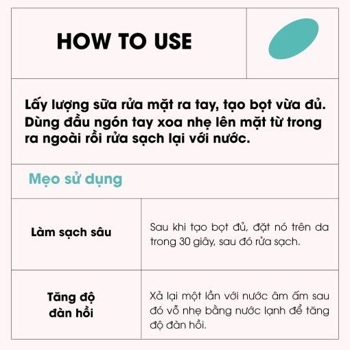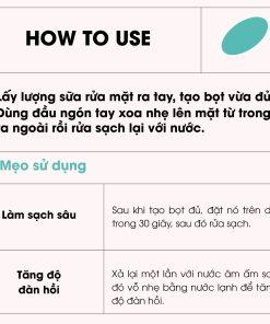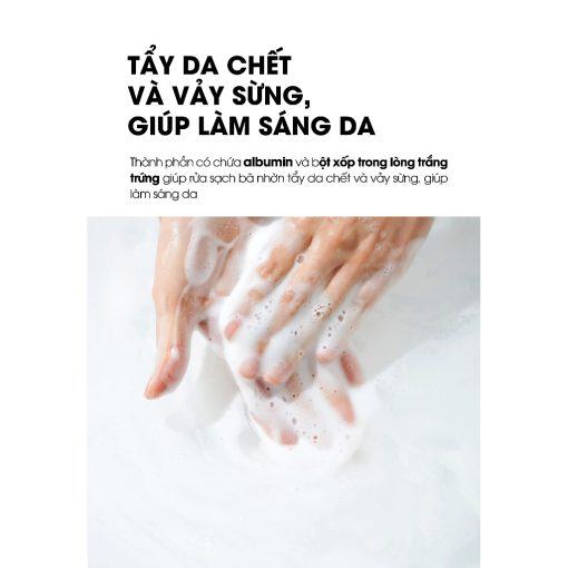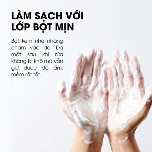 Sữa rửa mặt bao gồm các thành phần Abumin có tác dụng làm sạch da chết, vảy sừng và làm sáng da , bột từ đá tổ ong làm sạch sâu bã nhờn, dầu thừa, mụn đầu đen và thu nhỏ lỗ chân lông , chiết xuất từ trái cam ba lá, làm sáng da và thu nhỏ lỗ chân lông, chiết xuất hoa sen xanh làm dịu và bảo vệ da khỏi các tác nhân gây hại từ môi trường