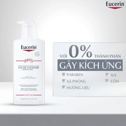 Sữa Rửa Mặt Eucerin PH5 Facial Cleanser Sensitive Skin là dòng sữa rửa mặt hoàn toàn mới được Eucerin thiết kế dành riêng cho làn da nhạy cảm, với độ pH5 cân bằng cùng công thức 0% thành phần gây kích ứng da, giúp làm sạch sâu và cải thiện da nhạy cảm.