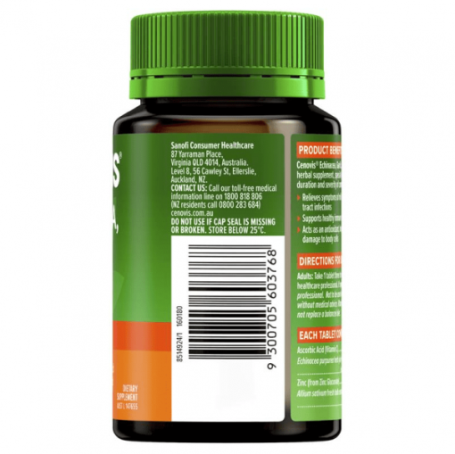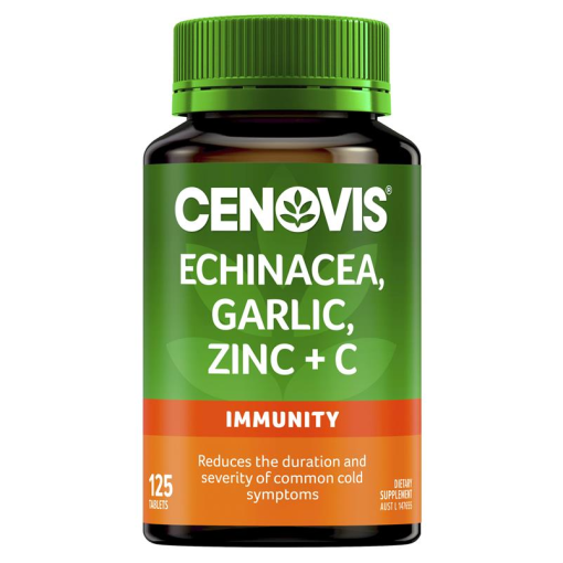 Viên uống tăng sức đề kháng Cenovis Echinacea Garlic Zinc có thành phần chính là tỏi, kẽm và C hỗ trợ bổ sung vitamin và khoáng chất giúp nâng cao hệ thống miễn dịch, tăng sức đề kháng cho cơ thể. Sản phẩm được sản xuất và phân phối bởi Cenovis, Úc.